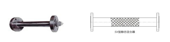 SX型靜態(tài)混合器的內(nèi)部單元由互相交叉的橫條組成,橫條與管殼的軸線(xiàn)成45度。SX型的混合效果介于SV型和SK型之間,分化過(guò)程時(shí)能使液滴分散到2-5um,用于一般的混合過(guò)程不均勻度系數(shù)a X x-2≤1%放大效應(yīng)不大。