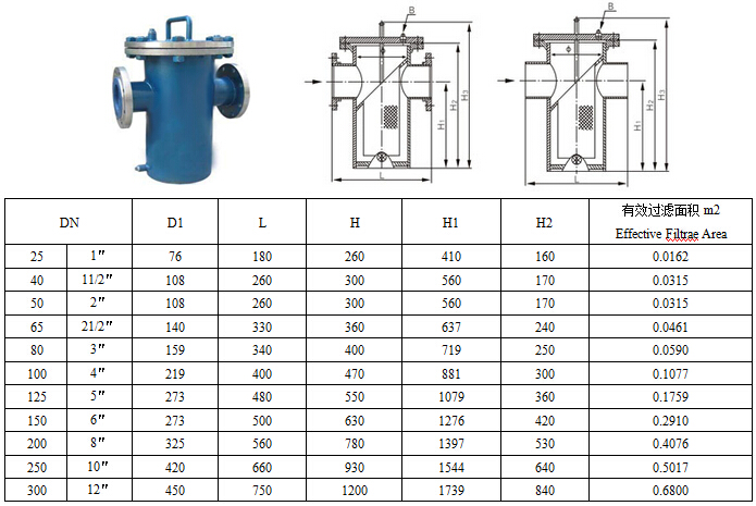 籃式過濾器用于油或其它液體管道上,過濾管道里的雜物,過濾孔面積比通徑管面積大2-3倍。遠遠超過Y型、T型過濾器過濾面積。濾網結構與其它過濾網不一樣,因形狀像籃子,故名籃式過濾器。