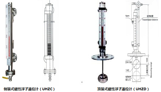 1、側(cè)裝式磁性浮子液位計(jì) (UHZ-C型) 2、頂裝式磁性浮子液位計(jì) (UHZ-D型)
